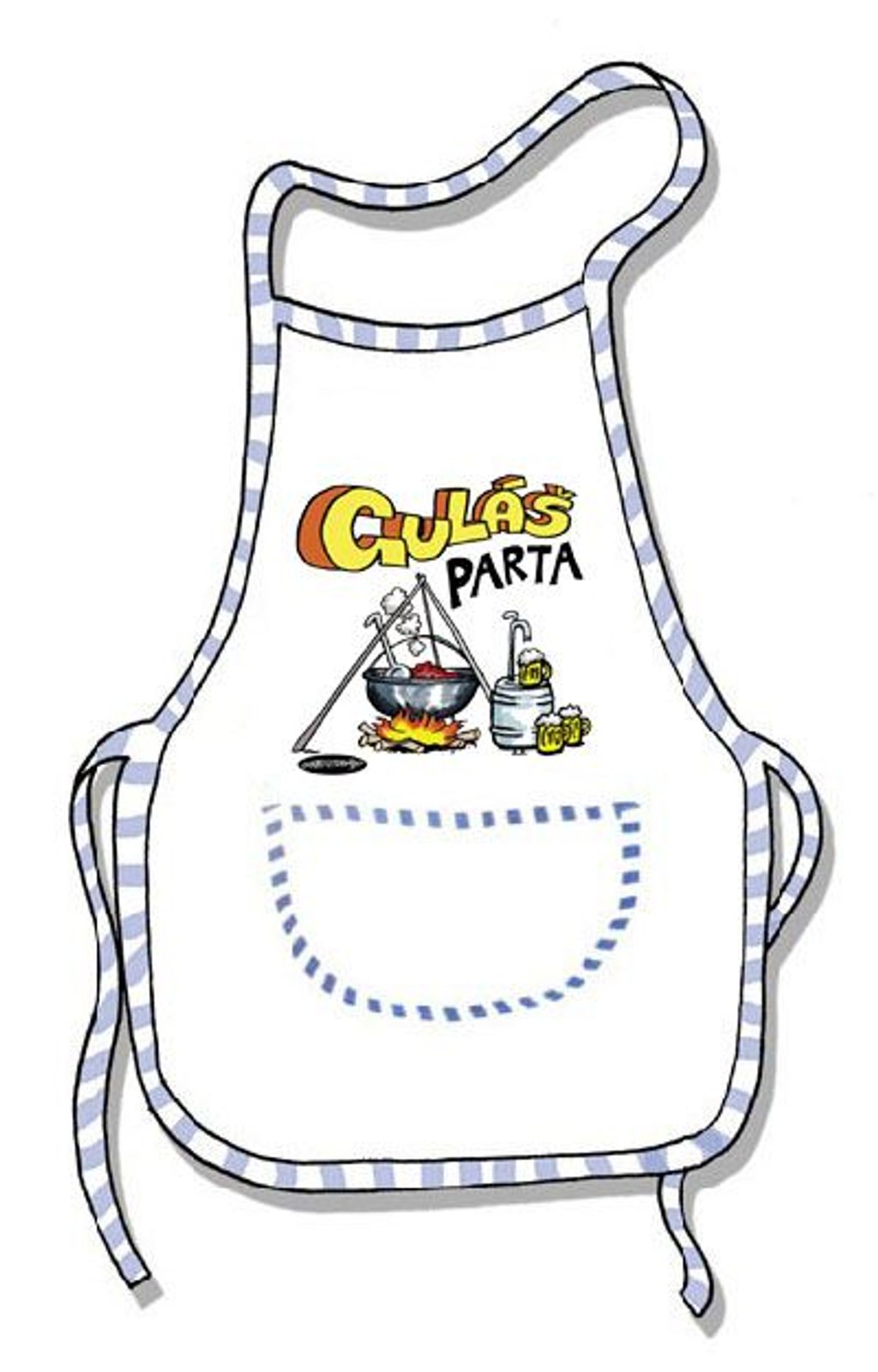 Kuchyňská  zástěra s přední kaspičkou, zavazováním na šnůry, nápisem "Guláš parta". Milý dárek, který je vhodný k mnoha různým příležitostem, zvláště pro milovníka guláše. Praktická zástěra, kterou by měl mít doma každý kuchař nebo grill master.