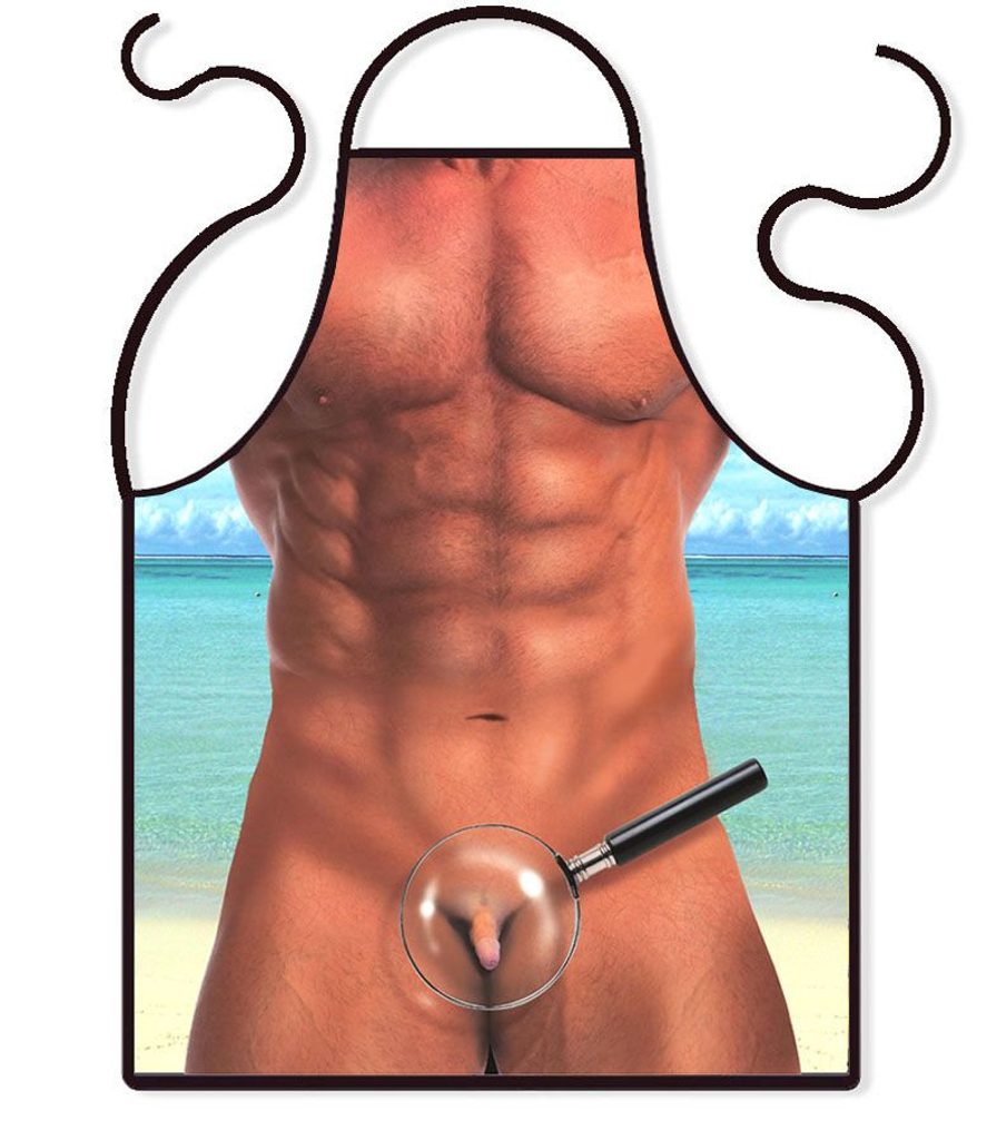 Zástěra s polohaným mužem a malým vybavením je opravdu drsný vtip. Doporučujeme dárek věnovat pouze muži se smyslem pro humor. Zpestřete si nejen vaření, ale i Váš vztah a zároveň se pobavte. Zástěra s tajemstvím, které odhalí jen lupa je nejen zábavným, ale také praktickým dárkem.