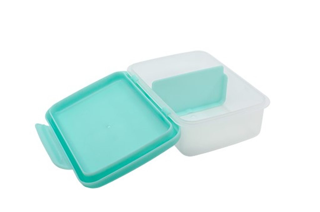 Svačinový box z bezpečného medicínského materiálu. Čirá průhledka pro vložení Vašich obrázků a fotografií. Vyjímatelná dělící přepážka. Dostupnost náhradních dílů. Je vhodná pro uchování pokrmů v ledničce i mrazničce.