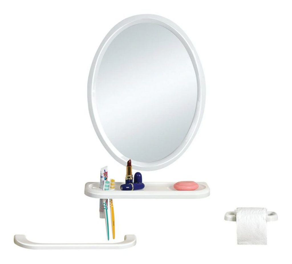 zrcadlo 50x39cm ovál+polička+2držáky-mýdlo,ručník plast.rám